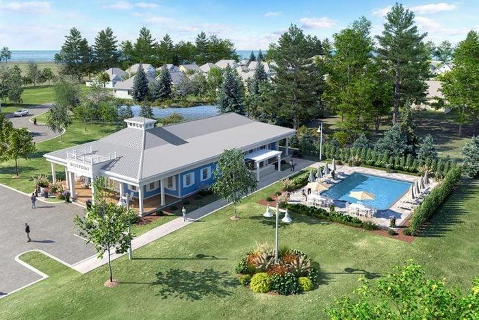Bluepoint Lookout features freehold bungalow, bungaloft, and Cape-Cod–inspired homes, offering open-concept layouts, main-floor living, and spacious verandas perfect for enjoying sunsets and lake breezes. The community’s exclusive private clubhouse is the heart of activity, complete with a heated outdoor pool, fitness space, social lounges, and beautifully landscaped outdoor gathering areas.